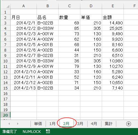 同様に、D3セルの数式は =SUMIF('2月'!$B$3:$B$17,集計!$B3,'2月'!$E$3:$E$17)