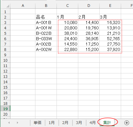 つまり、「1月」シートが最も多くのデータが入力されているので、このセル範囲に合わせています。