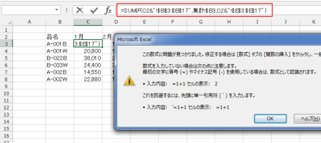=SUMIF(C2 & "!$B$3:$B$17",集計!$B3,'C2 & "!$E$3:$E$17")