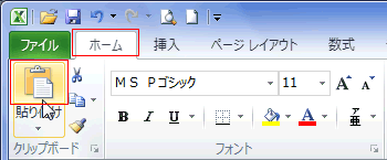 - [ホーム]タブの[クリップボード]グループにある[貼り付け]をクリックします。