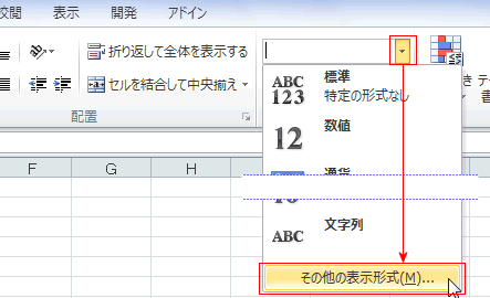 - F3:F5セルを選択し、[ホーム]タブの数値グループの[表示形式]から[その他の表示形式]を実行します。