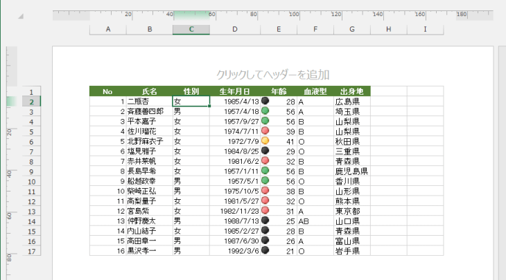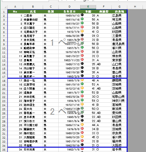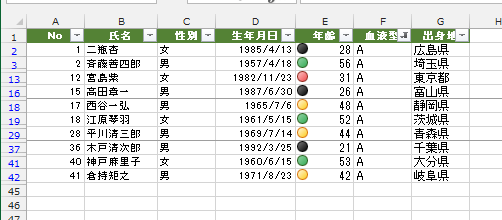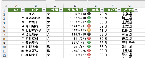 - 下図のようなデータを血液型「A」でフィルターしました。