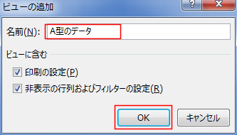 - ビューの追加で「A型のデータ」と入力して、[OK]ボタンをクリックしました。