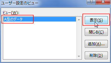 - 登録した「A型のデータ」を選択して、[表示]ボタンをクリックします。