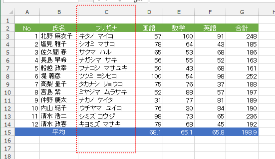 - C列が非表示になりました。