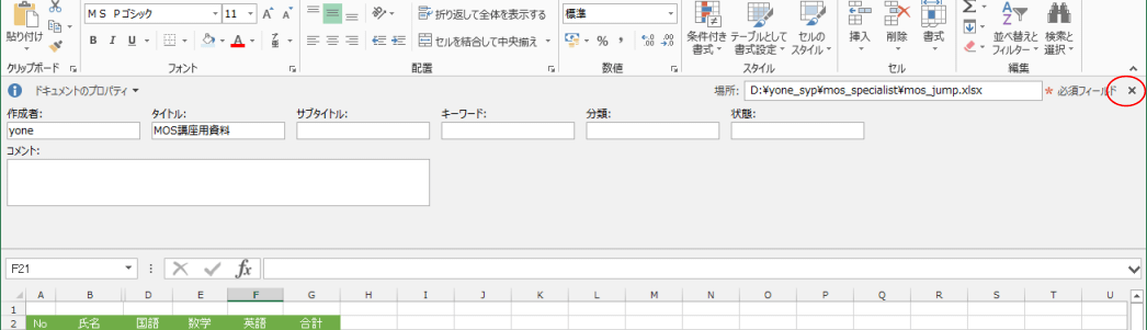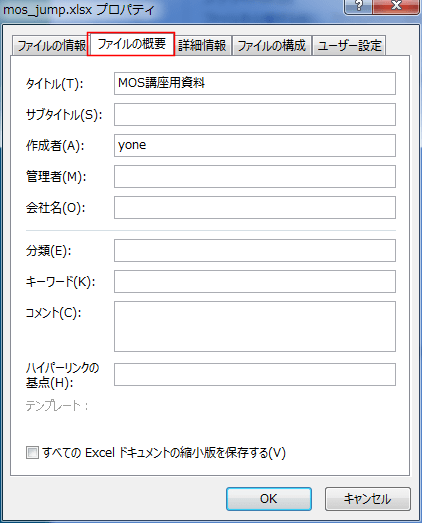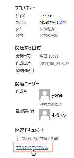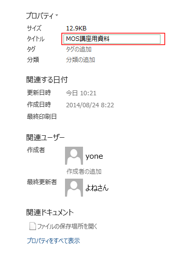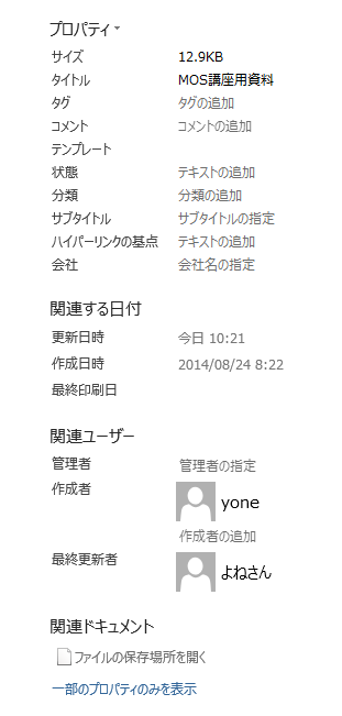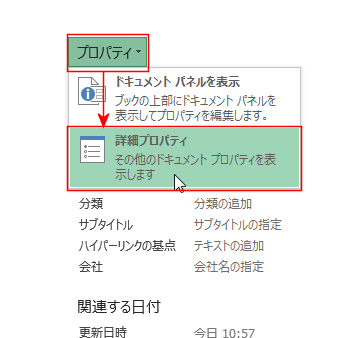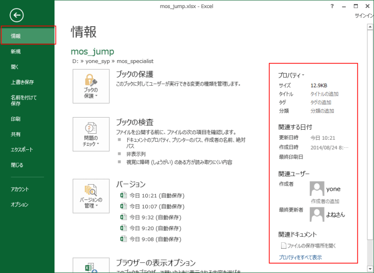 よねさんのExcelとWordの使い方|Excel2013 MOS講座:スペシャリスト(一般)の目次|ブックのプロパティの表示と変更