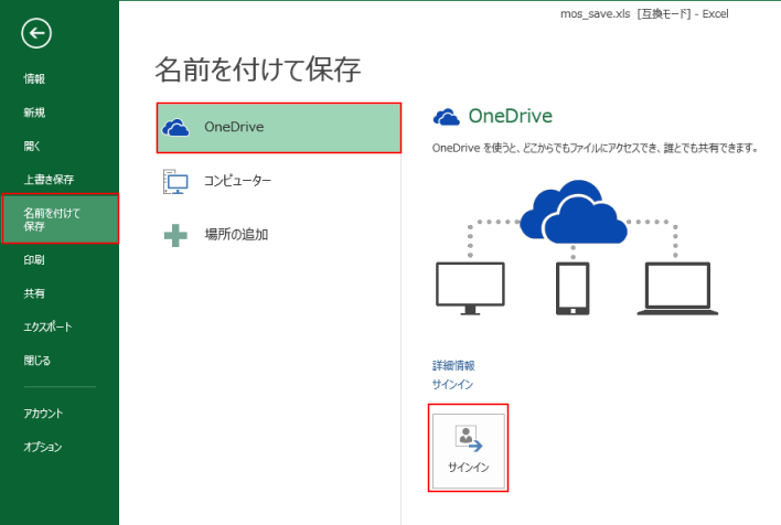 よねさんのExcelとWordの使い方|Excel2013 MOS講座:スペシャリスト(一般)の目次|OneDriveなどにファイルを保存する