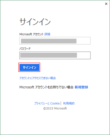 [サインイン]ボタンをクリックします。