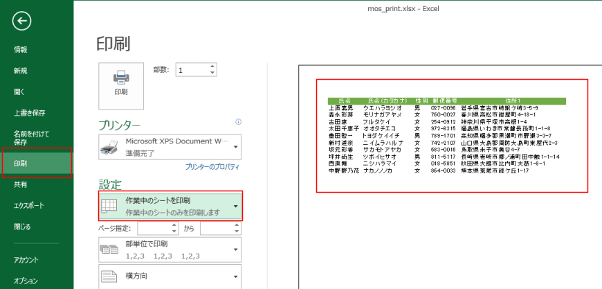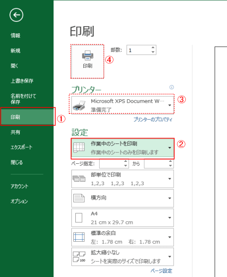 - シートを印刷するときは印刷するシートを選択します。(印刷するシートをアクティブにします)