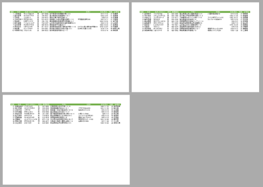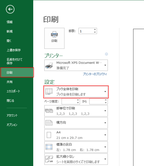 - ブック内のシート Sheet1〜Sheet3がすべて印刷されます。