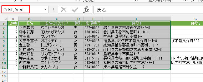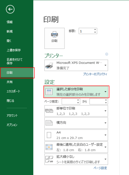 - 印刷で[作業中のシートを印刷]と設定しても、印刷範囲に指定した範囲だけが印刷されます。