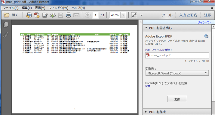 ここでは Adobe Readerで保存したPDFファイルが開かれました。