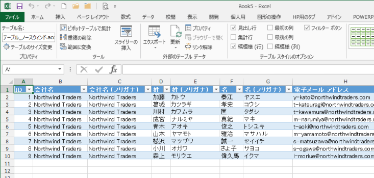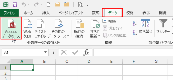 ここでは、あらかじめAccessで作成されたファイルをExcelへインポートします。
