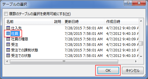 開くテーブルを選択して[OK]ボタンをクリックします。