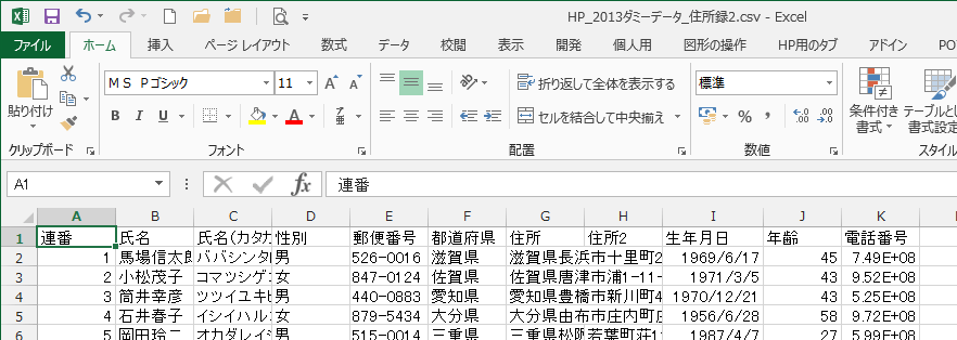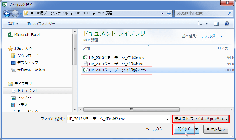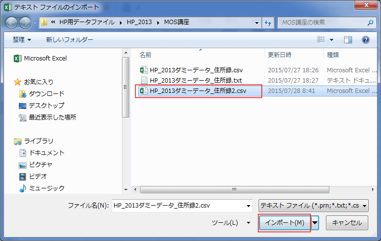 ここでは、あらかじめ作成していたCSVファイルを使います。