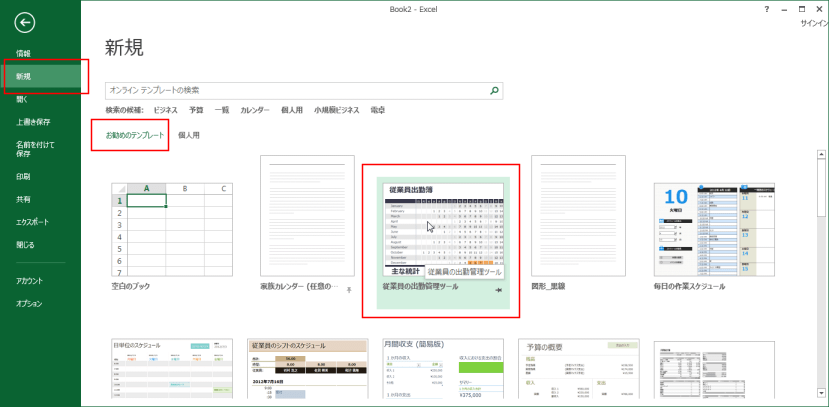- お勧めのテンプレートが表示されていますので、この中から選択することができます。