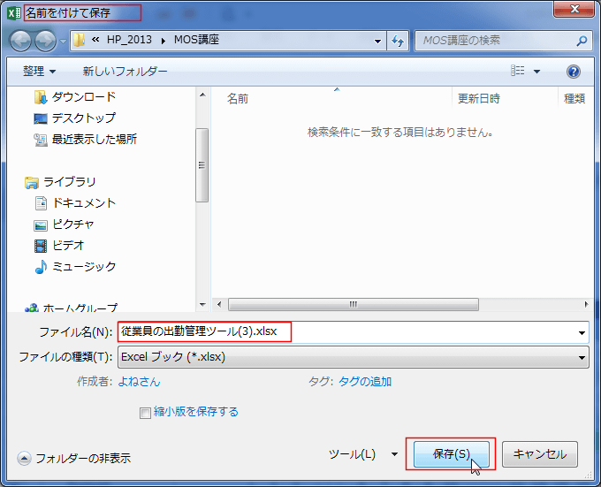 保存するフォルダーを指定して、ファイル名を入力したら[保存]ボタンをクリックしてファイルを保存します。
