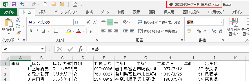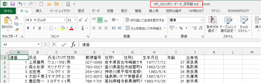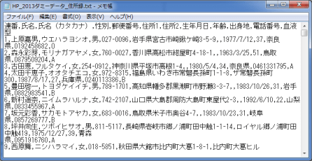 作成が面倒な方はサンプルファイル HP_2013test.txt を利用してください。