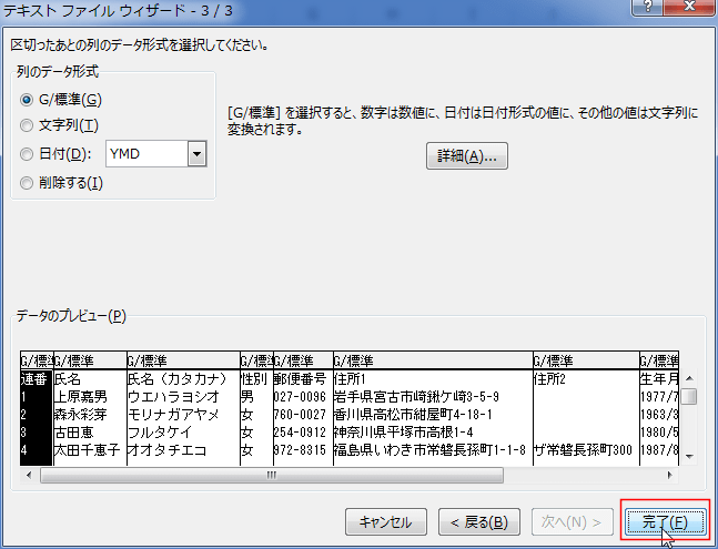 - [完了]ボタンをクリックします。