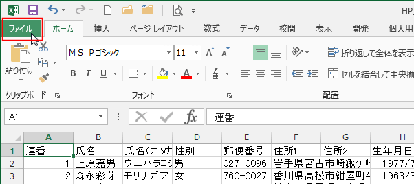 - [ファイル]タブをクリックします。
