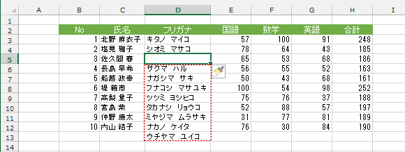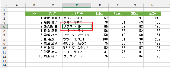 - D5セルに空白のセルが挿入されました。
