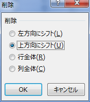 セルを削除した時にまわりのセルをどの方向へ移動するかを選択します。