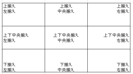 - 垂直方向と水平方向の2つの組み合わせで下図のような9つの配置が可能になります。