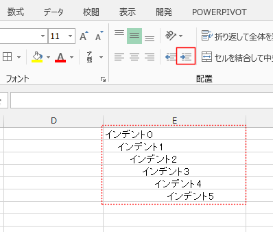 - [インデントを増やす]をクリックすると、1つずつインデントを増やすことができます。
