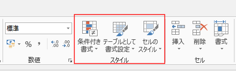 - 数値の表示については、[ホーム]タブのスタイルグループにいくつかのコマンドが準備されています。