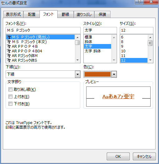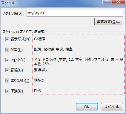 書式の設定が終わったら[OK]ボタンをクリックしてこのダイアログを閉じます。