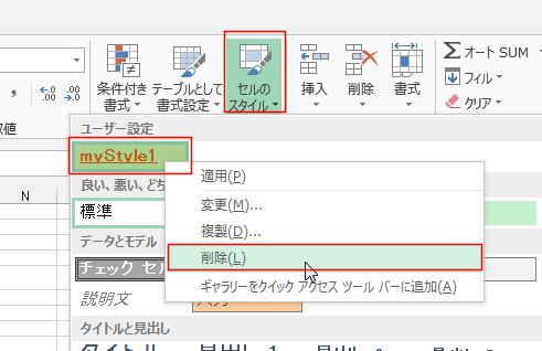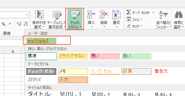 - セルのスタイルのユーザー設定として表示されるようになります。