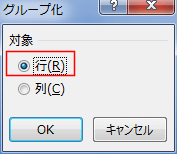 - 対象で「行(R)」が選択されているのを確認して、[OK]ボタンをクリックします。