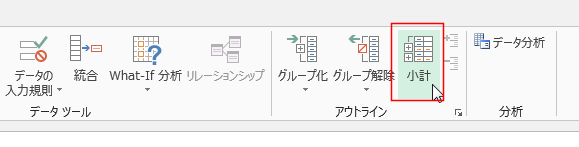 - [データ]タブの[小計]を実行します。