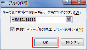 - データ範囲などを確認して[OK]ボタンをクリックします。