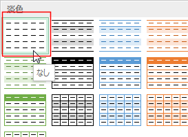 - スタイルリストの淡色にある「なし」を選択してもテーブルスタイルをクリアすることができます。