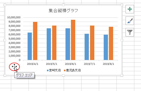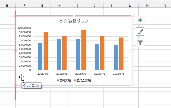 - グラフエリアにマウスポインタを合わせると十字矢印の形になります。この状態でドラッグするとグラフを移動することができます。