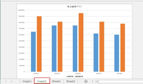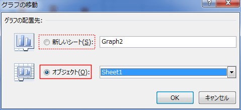 - 「新しいシート」を選択すると、新しいシート(グラフシート)が追加され、そこにグラフが移動します。グラフだけのシートが作成されます。