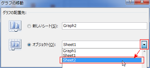 - 「オブジェクト」を選択すると、既存のシートへ移動することができます。