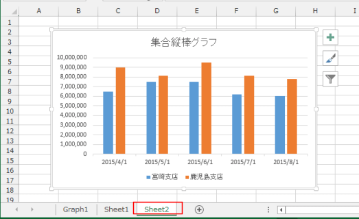 - チャートやグラフはほとんどのケースでシートに作成されます。[F11]でグラフを作成するとグラフシートに作成されます。