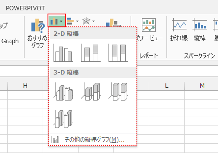 - 2-D縦棒と3-D縦棒のグループに集合縦棒、積み上げ縦棒、100%積み上げ縦棒などがあります。