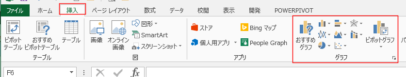 - チャートやグラフは挿入タブのグラフグループから作成することができます。
