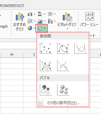 - 散布図(X,Y)またはバブルチャートの挿入
