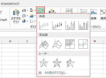 - 株価チャート、等高線グラフ、またはレーダーチャートの挿入