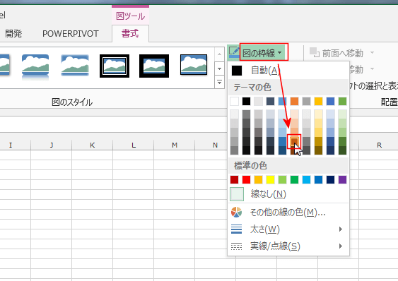 図のスタイルグループにあるダイアログボックス起動ツールをクリックします。