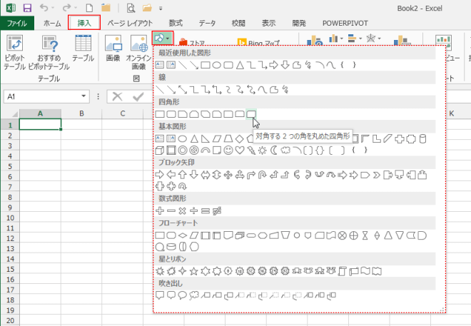 ここでは「対角する2つの角を丸めた四角形」を選択しています。