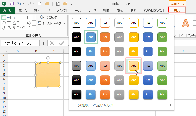- 図形のスタイルをクリックして、設定したいスタイルを選択します。