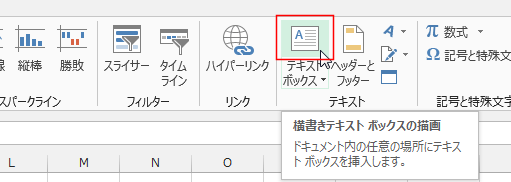 - [挿入]タブの[テキストボックス]をクリックすると、横書きテキストボックスを挿入することができます。