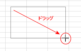 - シート内でドラッグすると任意のサイズで図形を挿入することができます。