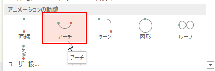 [アニメーション]タブの[アニメーションの追加]→[アーチ]を選択しました。