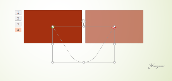 ハンドルをドラッグして軌跡を変化させることができます。
